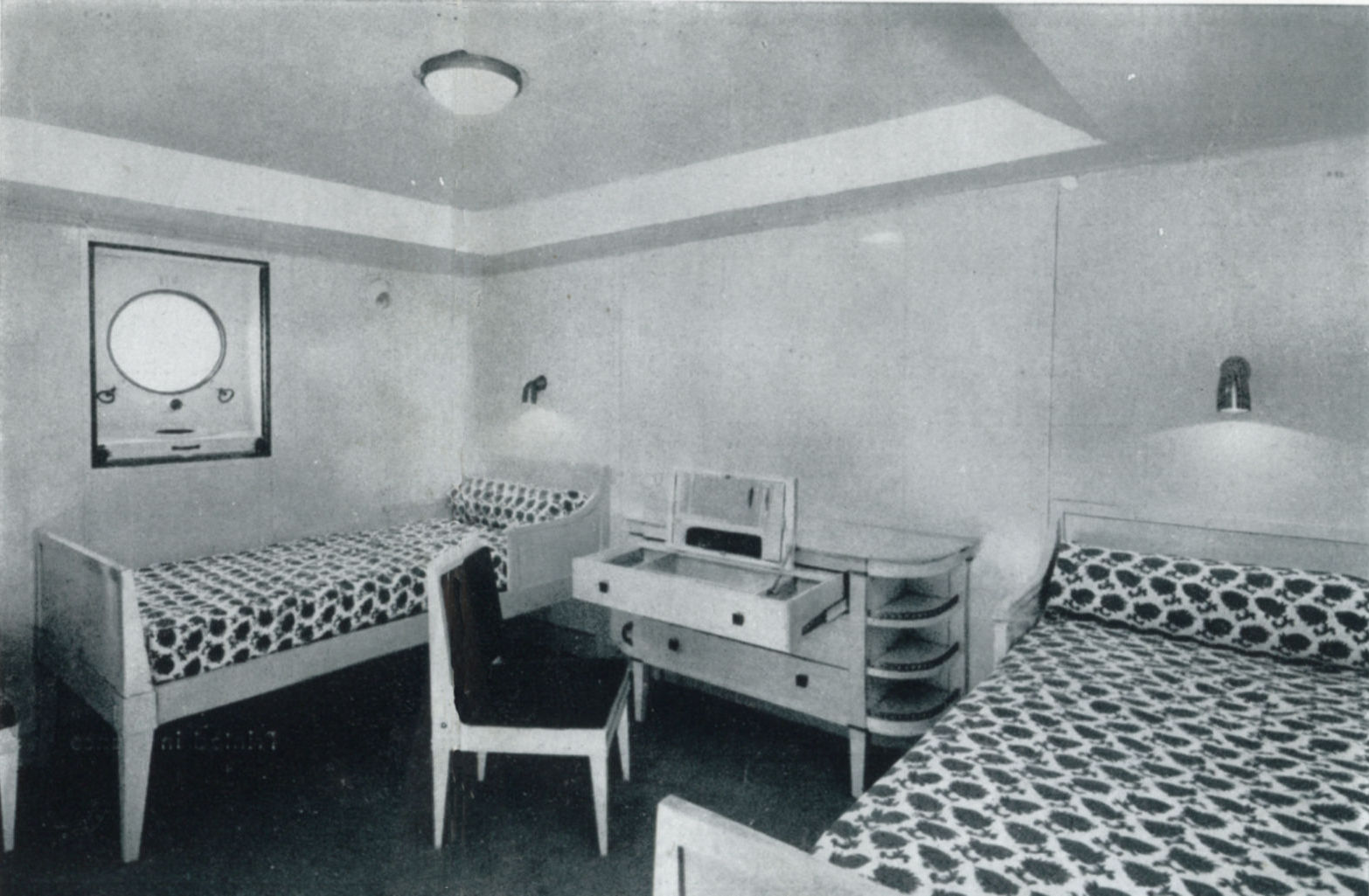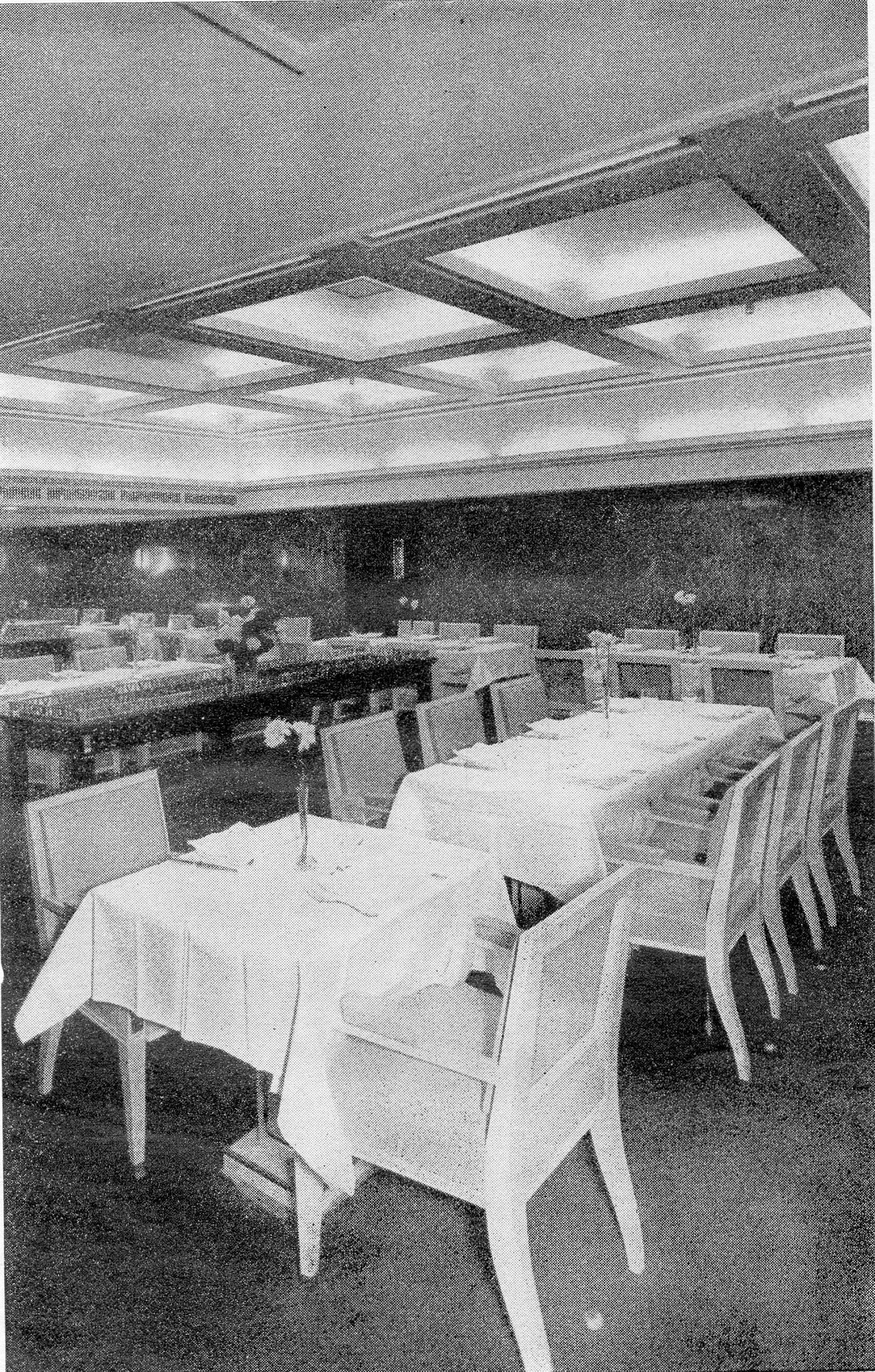 ![]() Le salon de la classe touristes avec au fond la peinture murale de Robert Wogencsky |