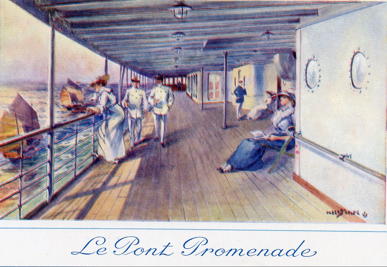 Le pont-promenade des premières(Aquarelle d' Albert Sebille) |